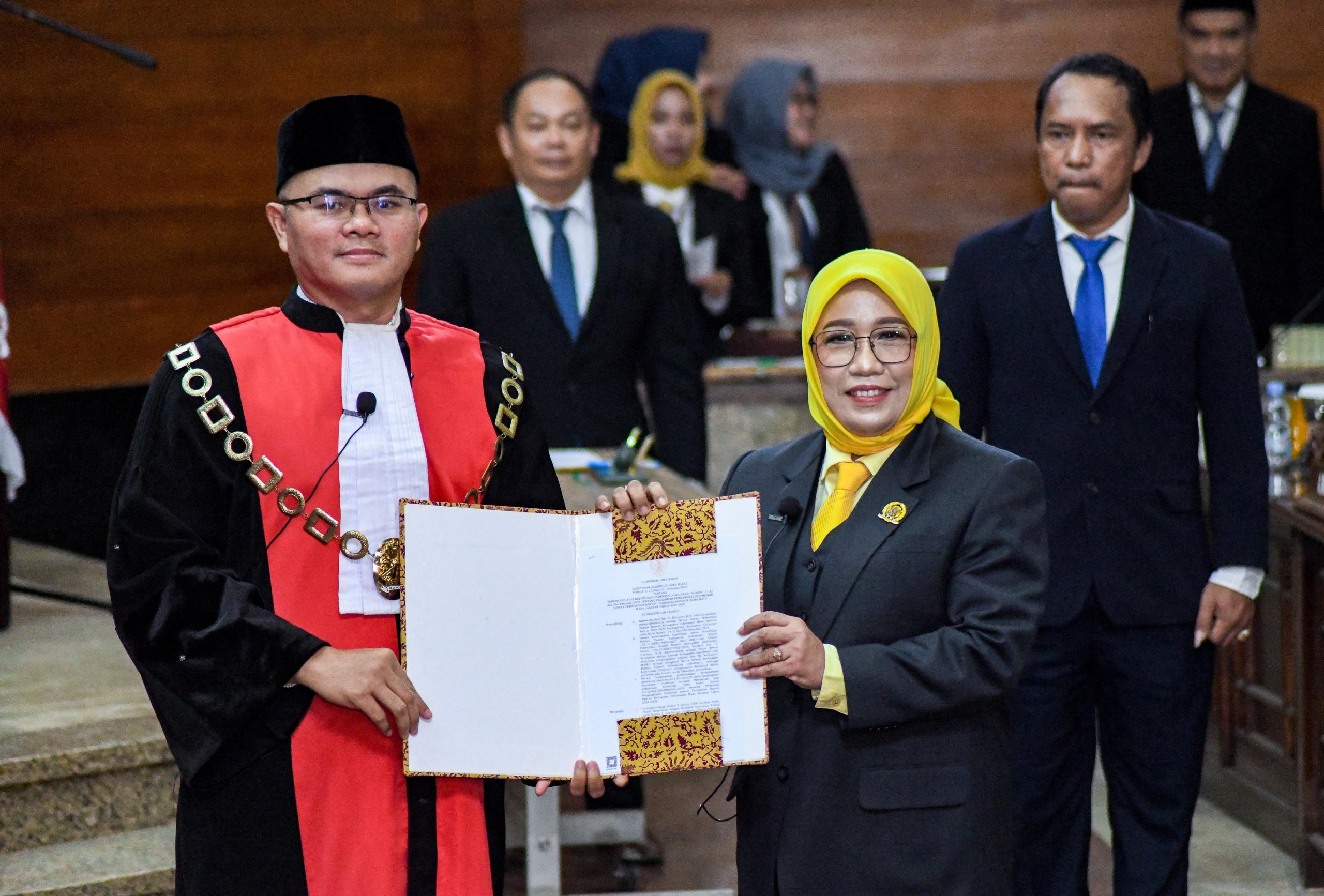 Dalam sambutannya, Bupati Lucky Hakim menyampaikan apresiasi dan ucapan selamat kepada pimpinan dan anggota DPRD yang baru dilantik.