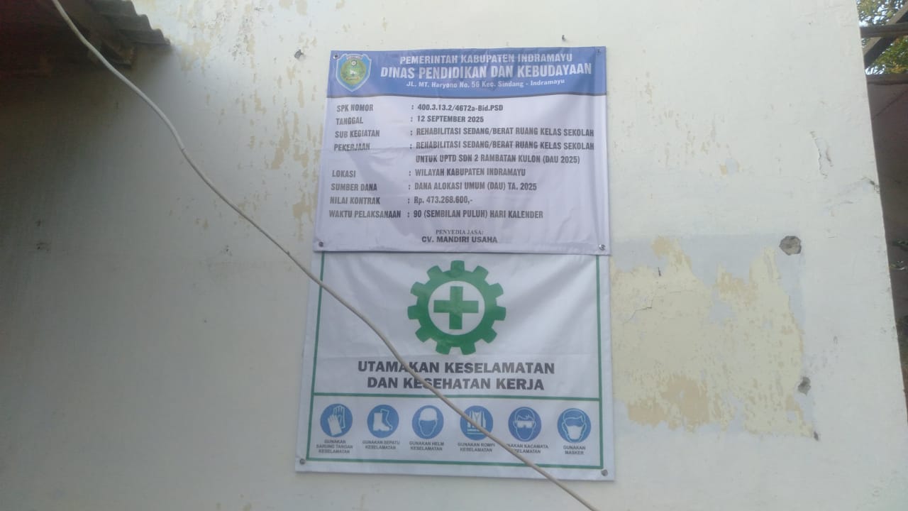 Kali ini, terpantau pada proyek Rehabilitasi Sedang/Berat Ruang Kelas di SDN 2 Rambatan Kulon, yang dikerjakan oleh kontraktor CV. Mandiri Usaha dengan anggaran sekitar Rp.473.268.600,- yang bersumber dari Dana Alokasi Umum (DAU)Tahun 2024, diduga telah mengabaikan K3 para pekerjanya. Di ketinggian, terlihat beberapa pekerja tidak memakai safety boots maupun helm proyek sebagai Alat Pelindung Diri (APD) saat bekerja,terlebih saat berada di ketinggian.Selain itu ada dugaan kecurangan dalam tambal-sulam tembok bagian dalam tengah kelas tidak terpasang besi atau angkur ( slop) sebagai pengikat antara pasangan bata lama dengan pasangan bata baru.